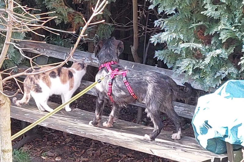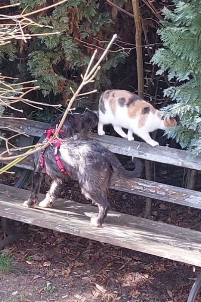 Alani verträgt sich gut mit Katzen.