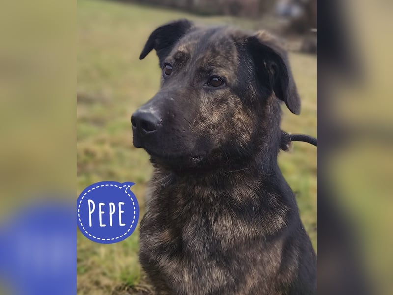 Pepe ist ein Bub, laut Tierarztschätzung ca. 2,5 Jahre alt (geb. 01.06.2023), wiegt 30kg und ist 56cm groß. Vermutet wird ein Bardino-Mischling.