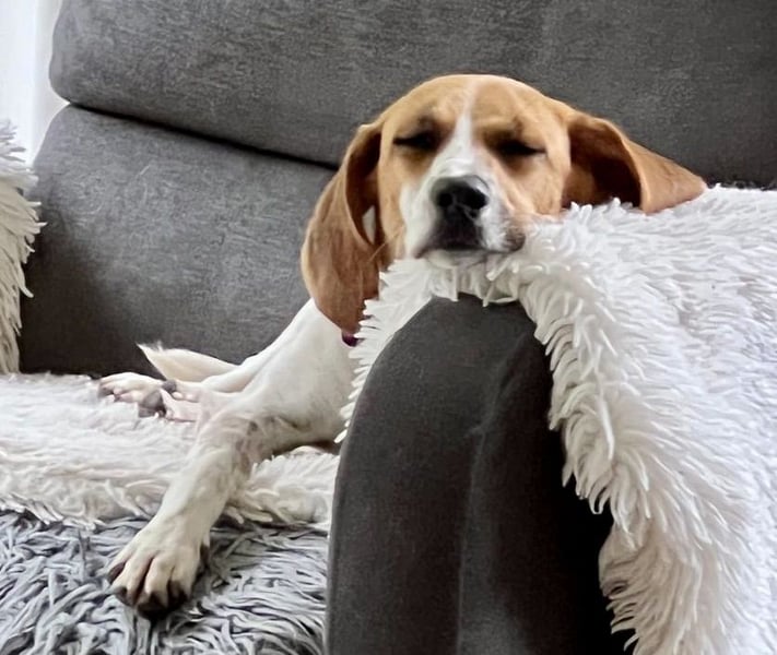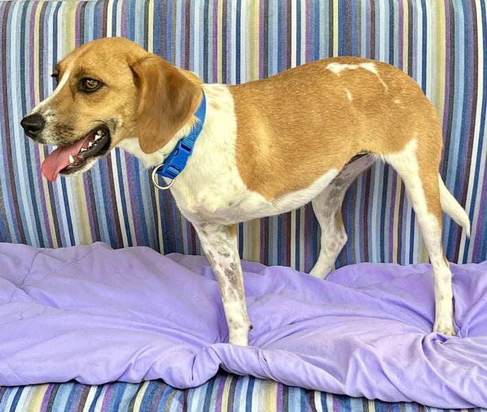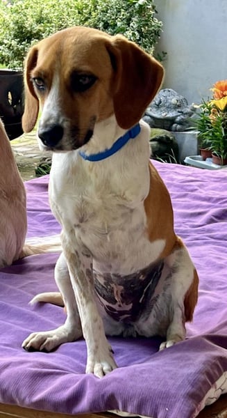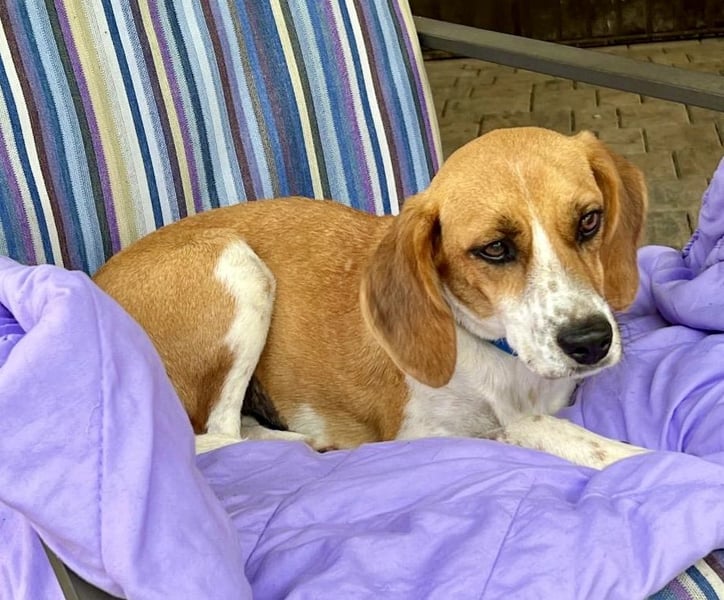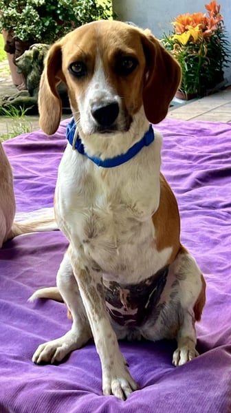 Lolaq/Bonny Beagle - Mix Hündin, geb.am 10.04.2022, hat eine Schulterhöhe von 40 cm und wiegt 9 kg.