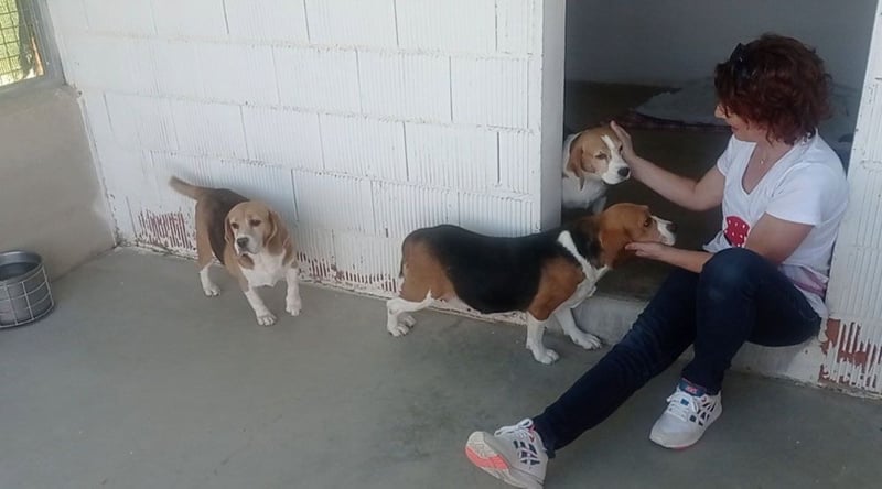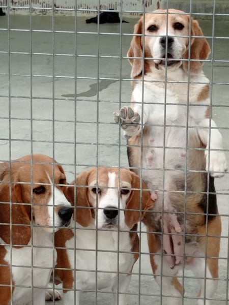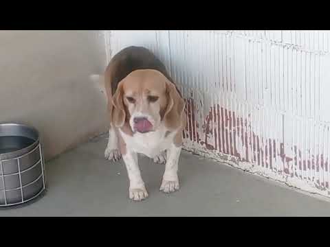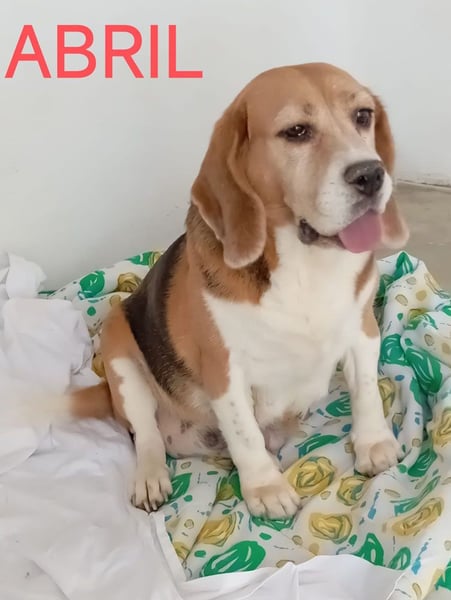Abril kam mit zwei weiteren Beaglen in das Tierheim. Sie kamen von einem Züchter, bei dem sie vermutlich dem Alter entsprechend „ausgedient“ hatte. An ihrem hängenden, vergrößerten Gesäuge und ihrem Bauch ist erkennbar, dass diese liebe Hündin bisher ein hündinnenunwürdiges Leben führen musste, das nur aus Gefangenschaft, Trächtig sein, Gebären und Welpen säugen bestand. Abril soll nun erleben, wie schön ein Hundeleben sein kann: in einem echten, kuscheligen Für-Immer-Zuhause, bei Menschen, die ihr mit Liebe, Verständnis und Konsequenz begegnen. Konsequenz in Bezug auf Diät und Bewegung, um ihre überflüssigen Kilos langfristig abzubauen.