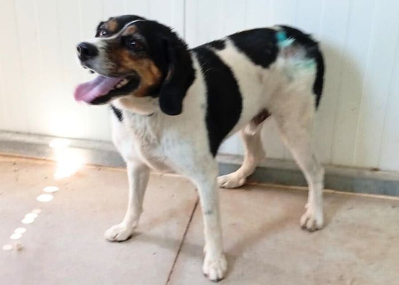 Moncho, vermutlich ein Beagle-Mix, wurde ausgesetzt auf der Straße aufgegriffen und in die Perrera ResurJA in Linares gebracht. Moncho hatte Glück, er war in einem der beiden Zwinger, die wir komplett geräumt haben in der Perrera. Moncho ist jetzt sicher, wir kümmern uns um ihn und seine Zukunft, die ihm ein besseres Leben versprechen soll.