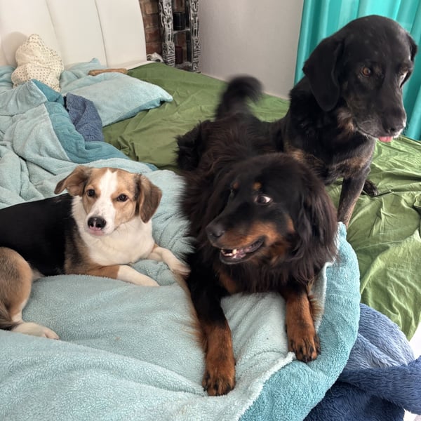 Mit anderen Hunden ist sie absolut sozial. Auf der Pflegestelle ist sie mi 9 anderen Hunden in verschiedener Größe und Geschlecht. Man merkt nur, dass es ihr auf der Pflegestelle mit sehr vielen, immer wechselnden Hunden zu viel ist. Wenn ein großer Hund kommt, ist sie 2-3 Tage unsicher. Ihre beste Freundin (Tierheim-Zwingergenossin Moxie), war auf der gleichen Pflegestelle und ist mittlerweile vermittelt, mit ihr spielte sie und schmuste sie immer. Bei so vielen Pflegehunden, kommt einfach jeder Hund etwas zu kurz. Nena braucht ihre Menschen, sie ist sehr anhänglich und vermisst es, mehr gekrault zu werden.