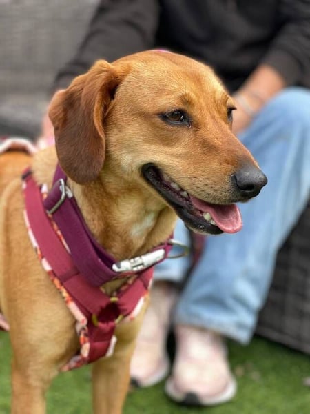 Noa (*10/23/2024, ca. 50 cm) ist eine liebenswerte Mischlingshündin, die mit ihren weichen Schlappohren und ihrem ansteckenden Lächeln sofort Sympathie weckt. Von der Statur und ihrem Verhalten her erinnert sie stark an einen einen Bracke-Jagdhund-Mix.