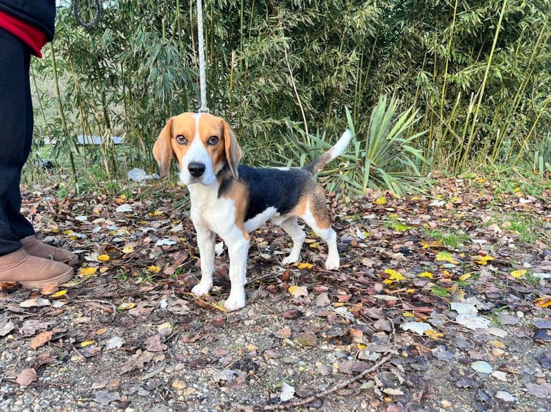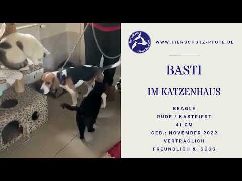 Basti ist ein Beagle, der ca. im November 2022 geboren wurde. Seit November 2025 lebt er im Tierheim, nachdem er auf dem Mittelstreifen einer Autobahn an die Leitplanken angebunden und ausgesetzt wurde.