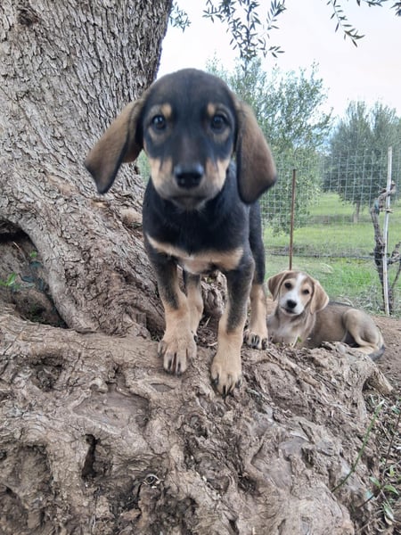 Beide zeigen sich freundlich, aufgeweckt und sozial. Sie sind gut mit anderen Hunden sozialisiert und bewegen sich neugierig und unbeschwert durch neue Situationen. Welpentypisch sind sie verspielt, voller Tatendrang und entdecken die Welt am liebsten mit ihren kleinen Schnüffelnasen. Wir gehen davon aus, dass Minnie und Mickey – wie viele neugierige Junghunde mit ausgeprägtem Spürsinn – später eine gewisse jagdliche Motivation entwickeln könnten. Ihre kleinen Nasen sind jetzt schon eifrig im Einsatz und lassen erahnen, dass Nasenarbeit und Suchspiele einmal genau ihr Ding sein werden.