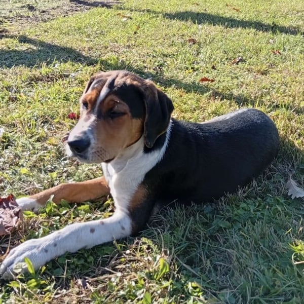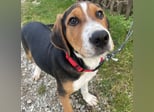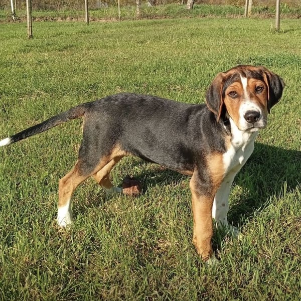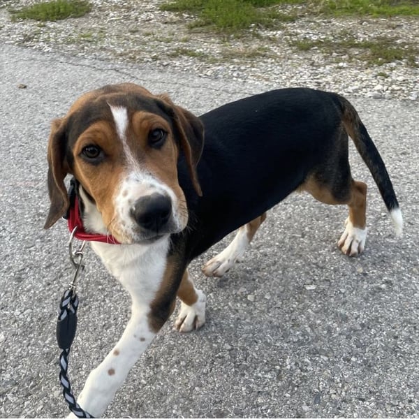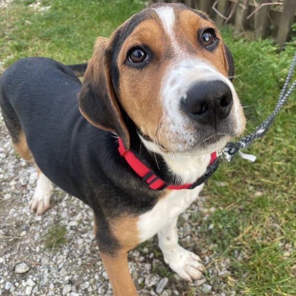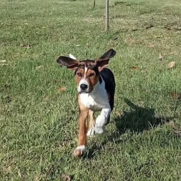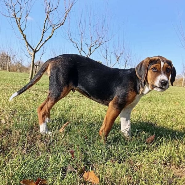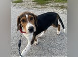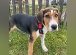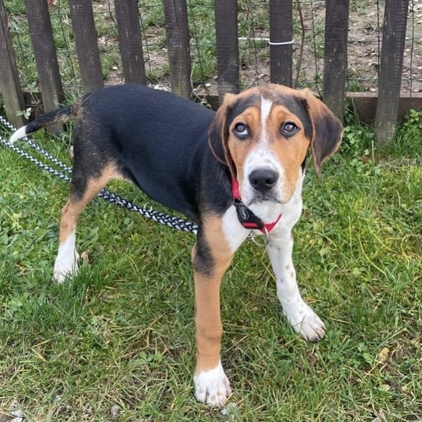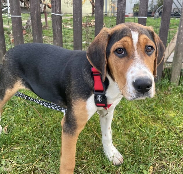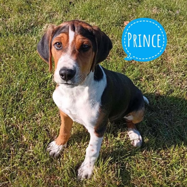 Prince ist ein Bub, er ist laut Tierarztschätzung ca. 4 Monate alt (geb. 30.07.2025), zur Zeit wiegt er 14 kg und ist 35 cm groß. Vermutet wird ein Beagle - Serbischer Laufhund - Mischling.