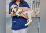 Buffy ist ein Beagle-Mischling. Sie sieht auf den Fotos größer aus als gedacht. Wir schätzen ihre Endgröße auf ca. 45 cm