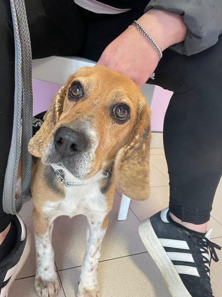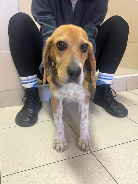 Dort zeigt sich der Beagle Bub (geb.Sept`24) offen, freundlich und menschenbezogen. Ein fröhlicher, verschmuster junger Rüde, der sich über jede Abwechslung freut. Draußen ist er noch etwas unsicher mit den Geräuschen, wird aber immer entspannter. Mit seinen Artgenossen ist er verträglich. Mit Katzen könnte es auch klappen, zumindest hat er sie schon kennengelernt. Kinder sind ihm nicht fremd.