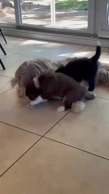 Er hat die ungeteilte Aufmerksamkeit von seiner Mutterhündin Lina mit seinem Bruder Gordon.