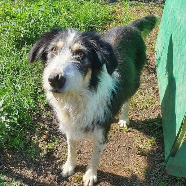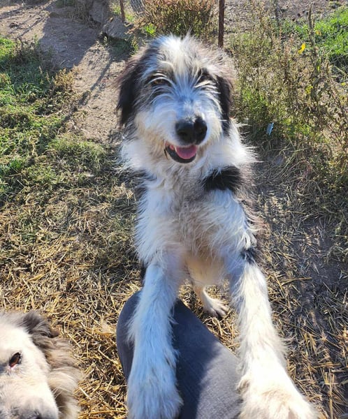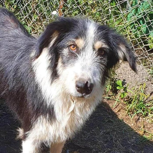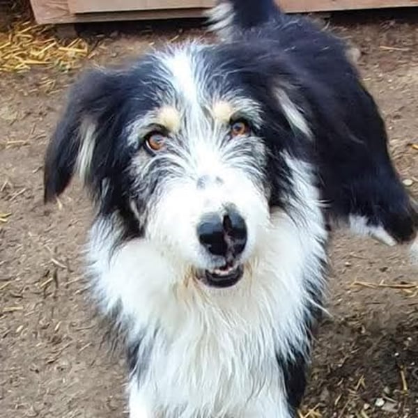 - Hündin; Schwarz-weiß; langhaarig