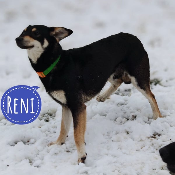 Reni ist von sehr unsicherer, sensibler Natur. Er ist ruhig, zurückhaltend und braucht Zeit, um Vertrauen zu fassen. Besonders bei fremden Menschen zeigt er sich ängstlich und vorsichtig. In neuen Situationen ist er schnell verunsichert, im Auto ist er deutlich gestresst und an der Leine kennt er sich noch nicht richtig aus – er läuft, bleibt aber dann auch mal stehen und braucht geduldige Anleitung. Er lernt gerade erst, wie das Leben außerhalb seines bisherigen Umfelds funktioniert.