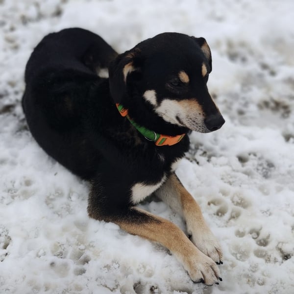 Reni ist ein Bub, laut Tierarztschätzung ca. 1 Jahr alt (geb. 01.02.2025), wiegt 15 kg und ist 44 cm groß. Vermutet wird ein Terrier-Mischling.