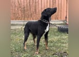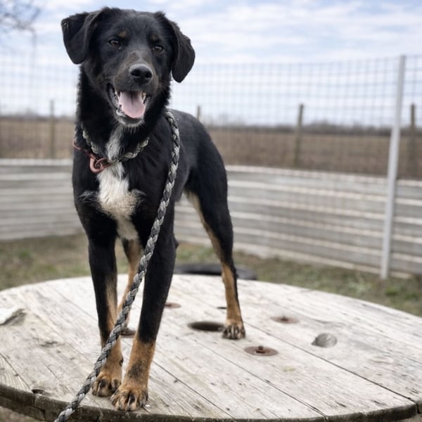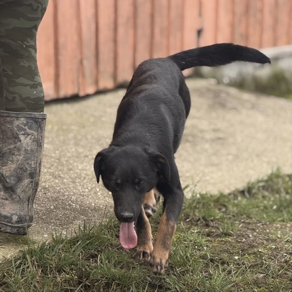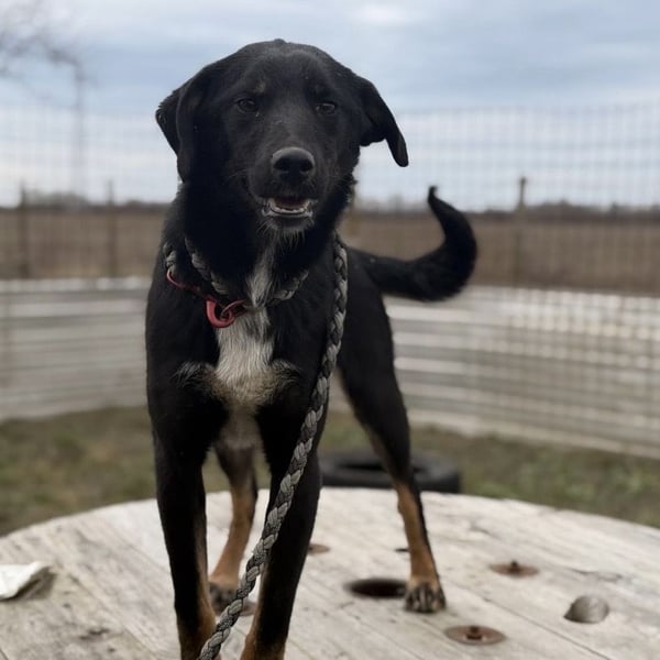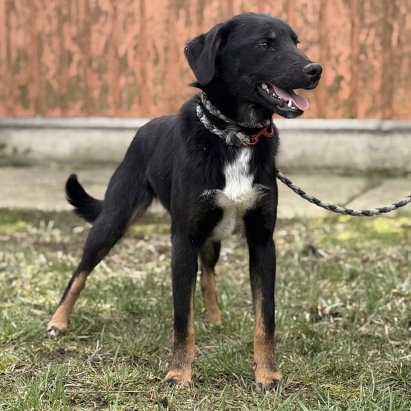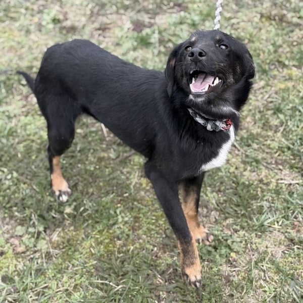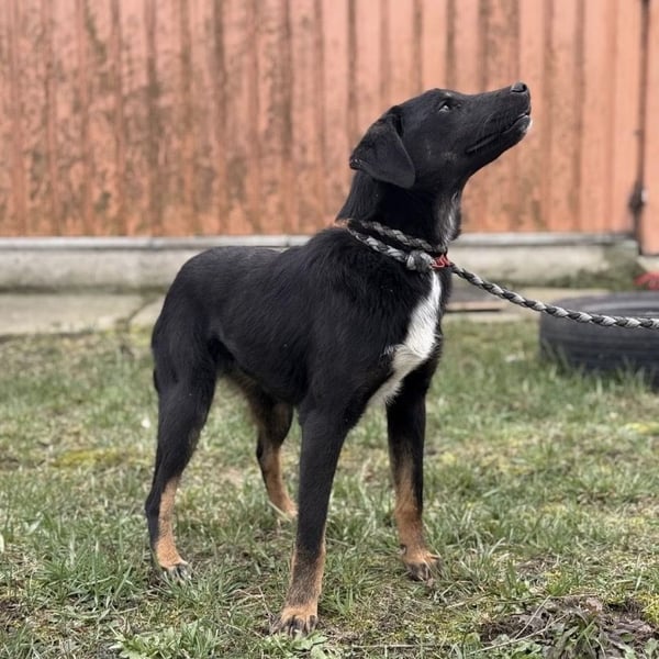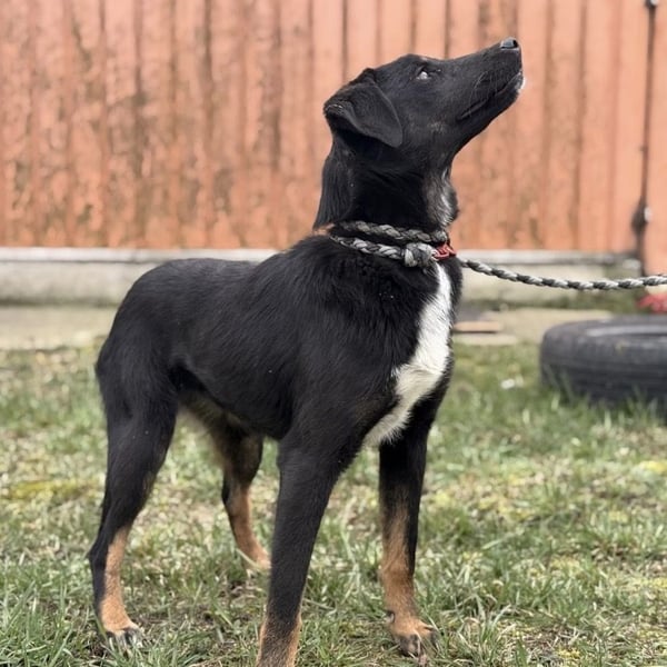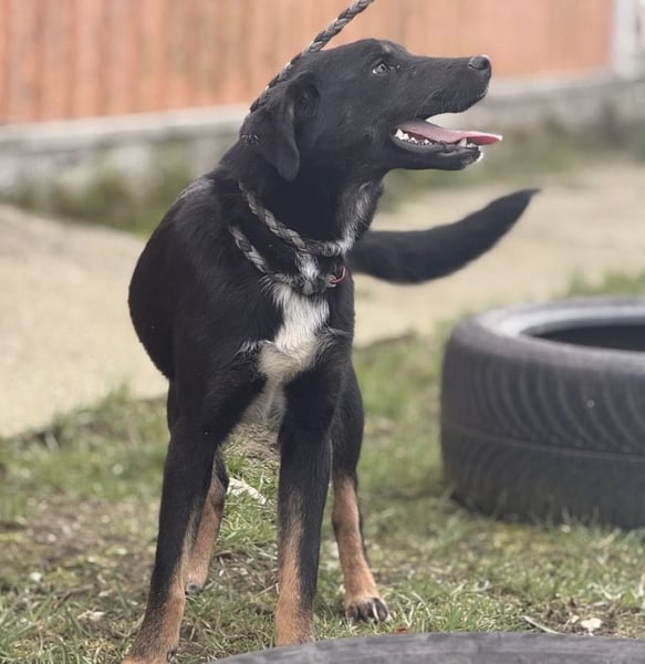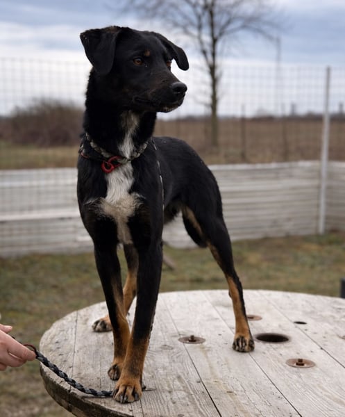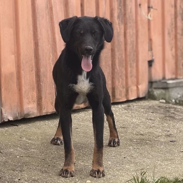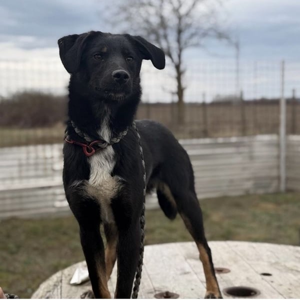 Kira ist ein Mädchen, sie ist laut Tierarztschätzung ca. 2 Jahre alt (geb. 10.05.2024), wiegt 11,7kg und ist 54cm groß. Vermutet wird ein Beauceron-Mischling.
