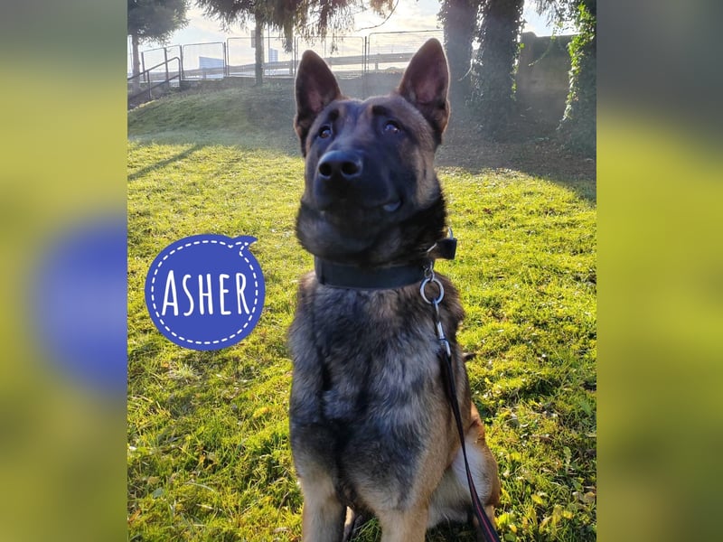 Asher zeigt sich als äußerst energiegeladener, arbeitsfreudiger und gleichzeitig sehr freundlicher Rüde. Er ist gehorsam, offen, menschenbezogen, verschmust und verteilt gerne Küsschen. Er möchte Menschen gefallen, da tut er alles dafür. Doch Asher liebt und braucht auch Beschäftigung, Training, Spiel und sucht aktiv die Zusammenarbeit mit dem Menschen. Seine Aktivität ist hoch – Asher braucht Menschen, die Erfahrung mit der Rasse haben, Spaß daran haben, mit einem Hund zu arbeiten und ihn körperlich wie geistig auszulasten.