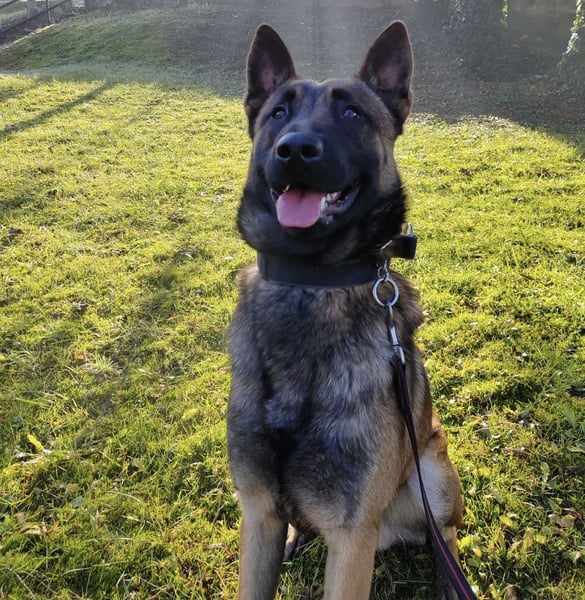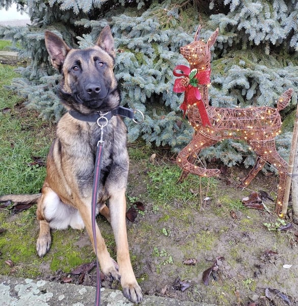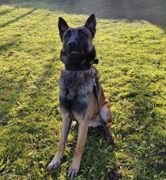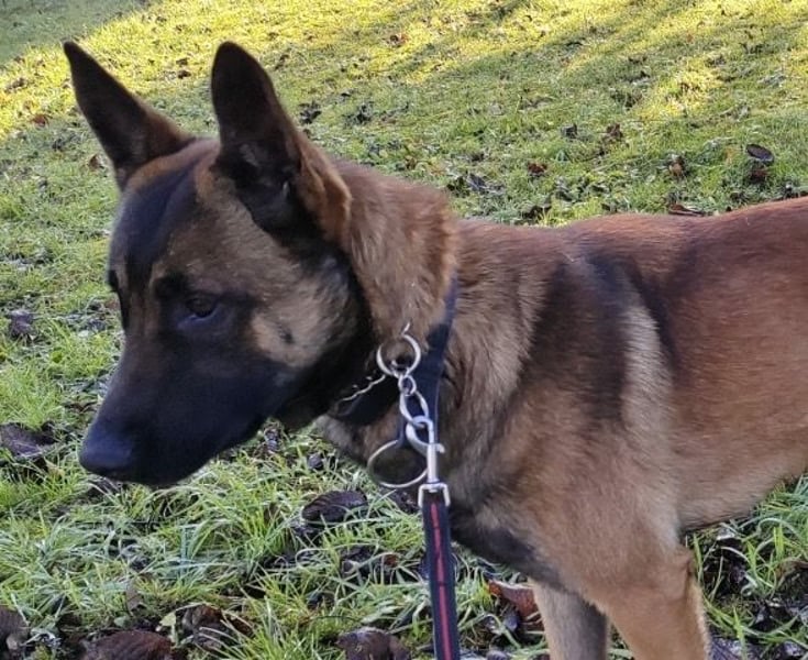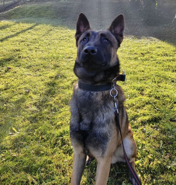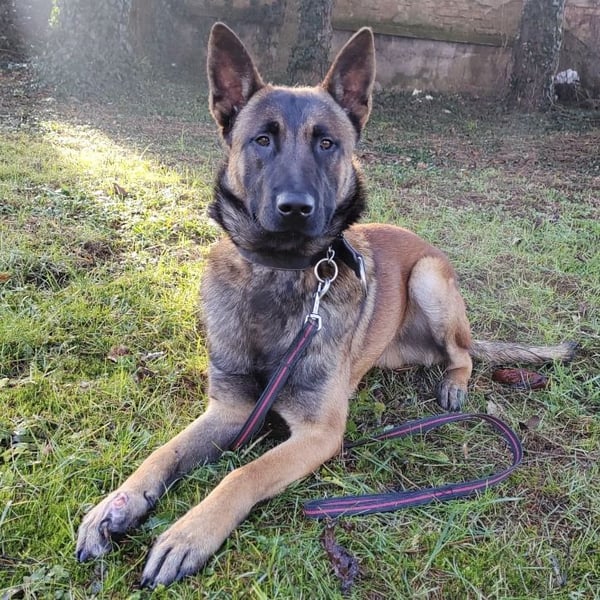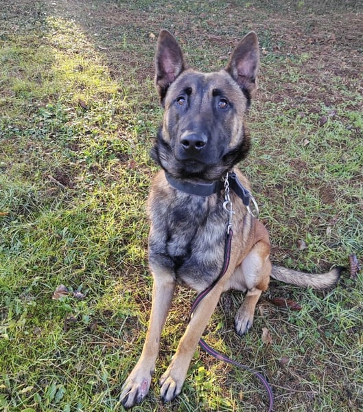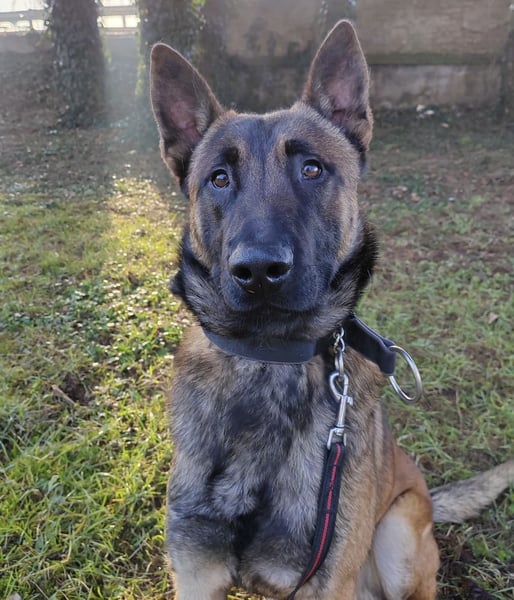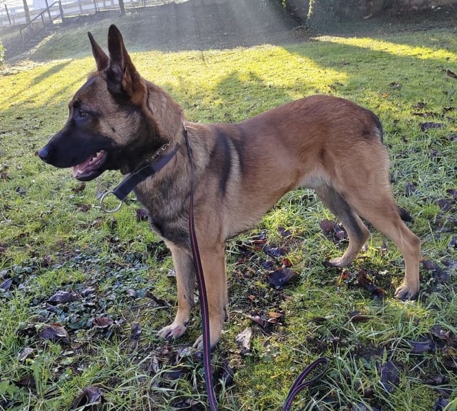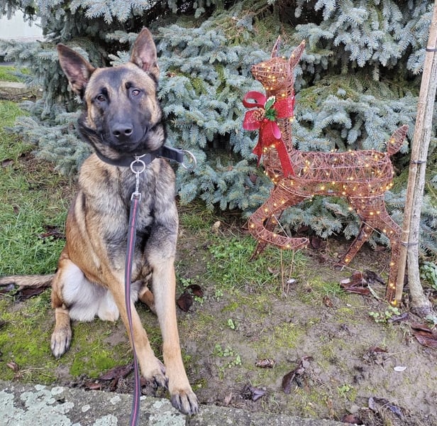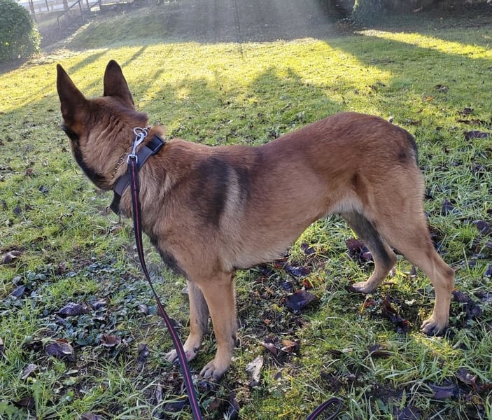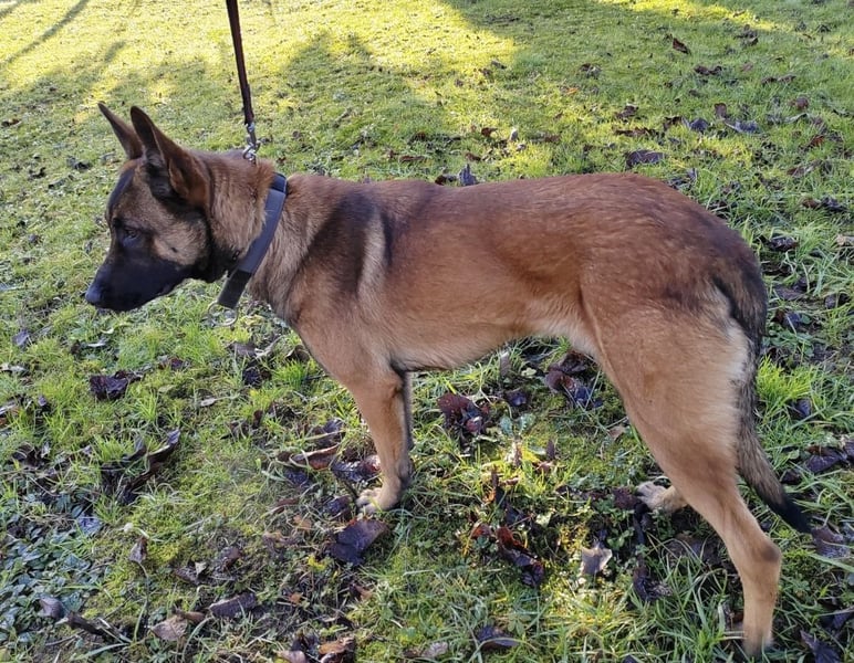 Asher ist ein Rüde, laut Tierarztschätzung ca. 2 Jahre alt (geb. 28.11.2023), er wiegt 28 kg und ist 68 cm groß. Ein richtiger Prachtexemplar. Vermutet wird ein Belgischer Schäferhund oder Malinois.