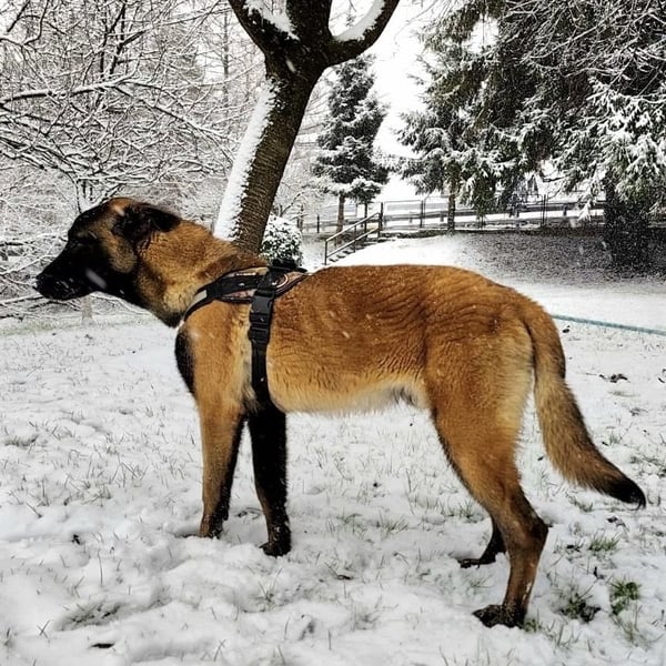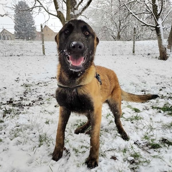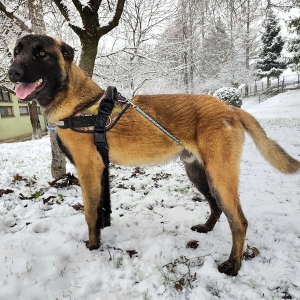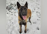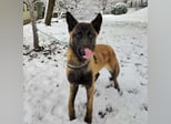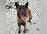Ranger ist ein Bub, er ist laut Tierarztschätzung ca. 1 Jahr alt (geb. 24.12.2024), wiegt 28 kg und ist 70 cm groß. Er ein Belgischer-Schäferhund-Malinois (Mix).