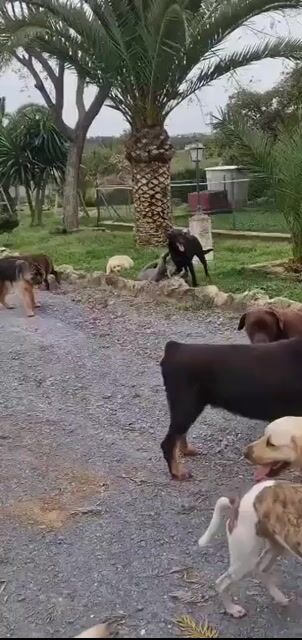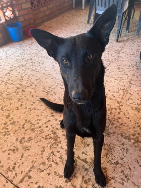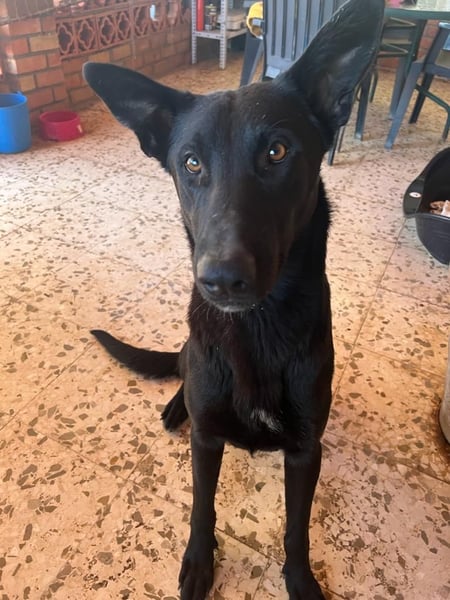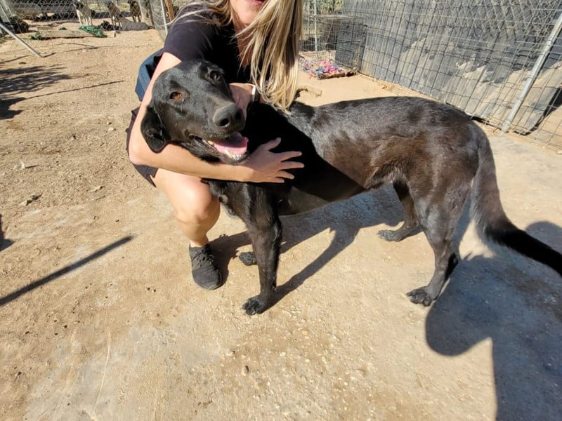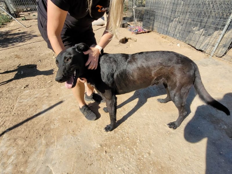 Elwood kam eines Tages auf einen Bauernhof in der Nähe von Huelva marschiert, und da er ein wirklich netter Hund ist und mit seinem bezaubernden Silberblick jedes Herz zum Schmelzen bringen kann, entschied der Besitzer des Gehöfts, dass er Elwood als Zweithund behalten würde – leider war der Ersthund des tierfreundlichen Mannes mit dieser Entscheidung ganz und gar nicht einverstanden, und auch nach einer ganzen Woche mit vorsichtigen Annäherungsversuchen und unendlich vielen Bestechungskeksen änderte er seine Meinung nicht. Deswegen musste Elwood eben doch in ein Tierheim umsiedeln – aber viel besser als bei unseren Freunden von Dolmen Animal hätte es der lustige Schäferhund-Mix nicht treffen können. Elwood ist ein Mischling, hat aber eine große Dosis Belgischer Schäferhund-Gene im Blut. Seine langen, eleganten Beine könnten auf die Beteiligung eines Laufhundes hinweisen, aber das ist natürlich reine Spekulation. Auf jeden Fall ist Elwood mit 70cm sehr hoch, aber wiegt dabei nur sehr schlanke 30kg. Der erst ein Jahr alte Rüde ist fröhlich, verspielt und sehr sozial mit anderen Hunden, vollkommen unabhängig von Alter, Größe oder Geschlecht seines Gegenübers. Auch die Zweibeiner gewinnt unser hübscher Charmeur im Pfotenumdrehen für sich. Elwood ist ein intelligenter und sehr lernwilliger Hund, der sich immens freut, wenn er seinem Menschen gefallen kann.