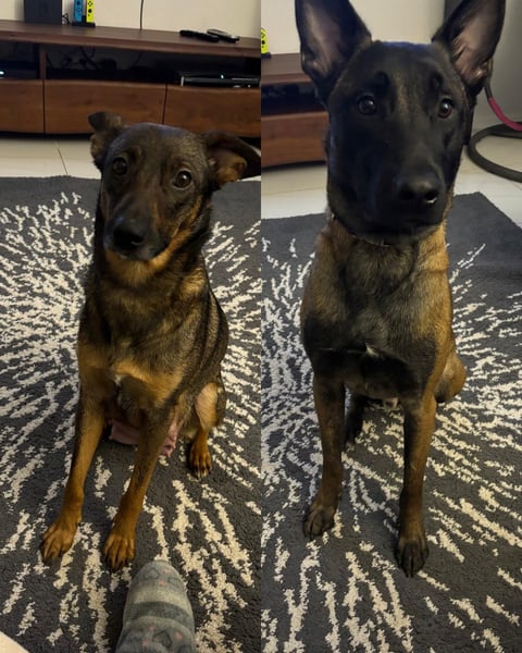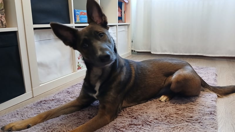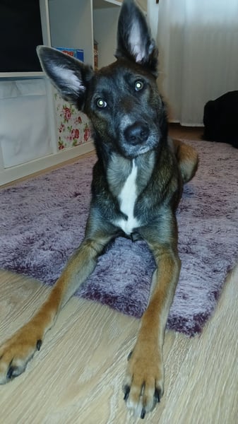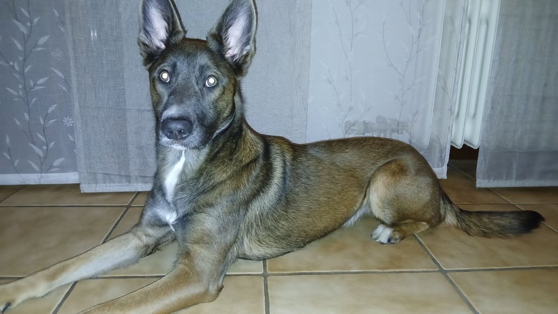 Malinois-Mischling Hündin in grau beige 27.01.24
