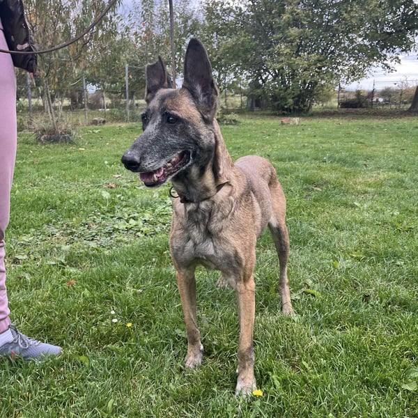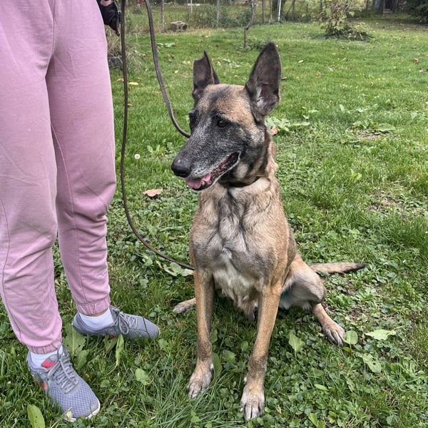 Gea ist ein Mädchen, laut Tierarztschätzung ca. 8 Jahre alt (geb. 02.05.2017). Sie ist ein belgischer Schäferhund.