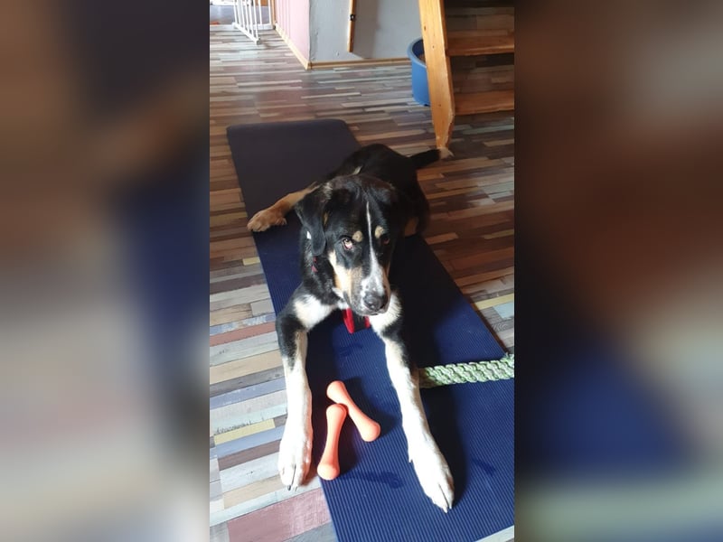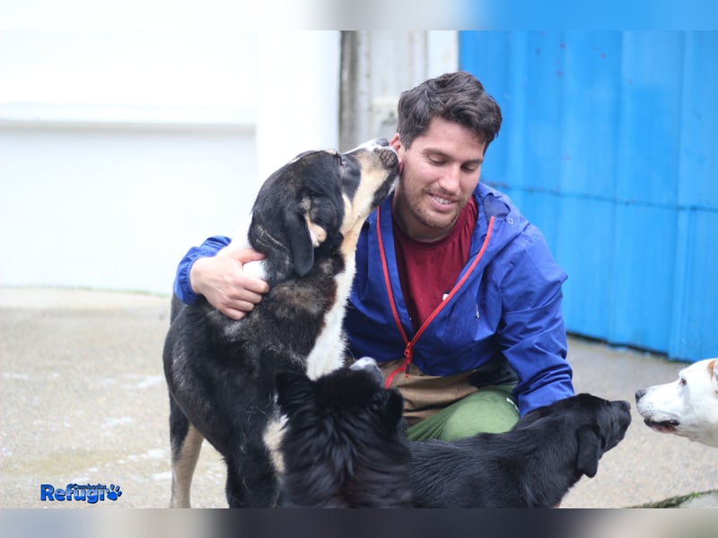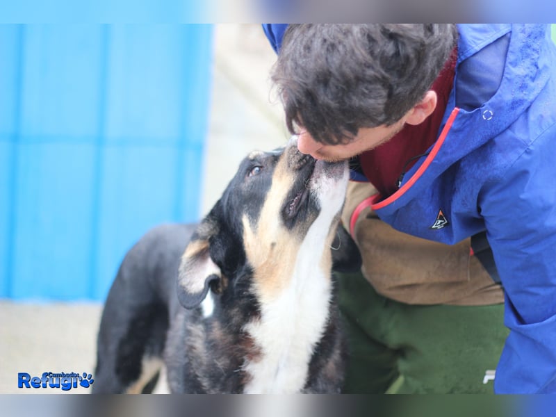 Die junge, tapsige Hündin ist sehr menschenbezogen & liebt Streicheleinheiten. Sie darf in ihrem zarten Alter noch ein wenig dazu lernen. Aber wer lernt im Leben nicht täglich dazu?