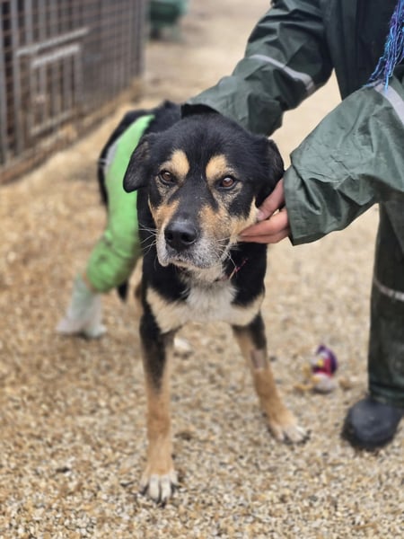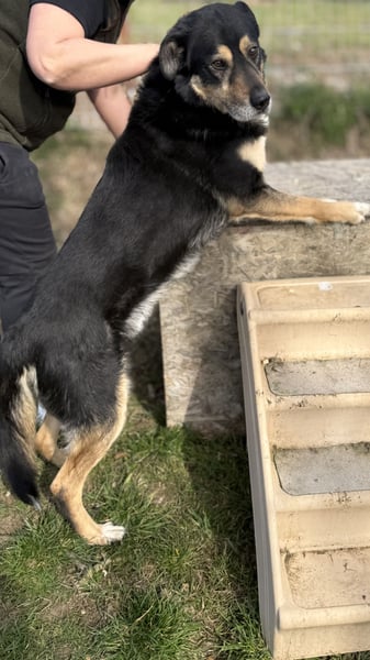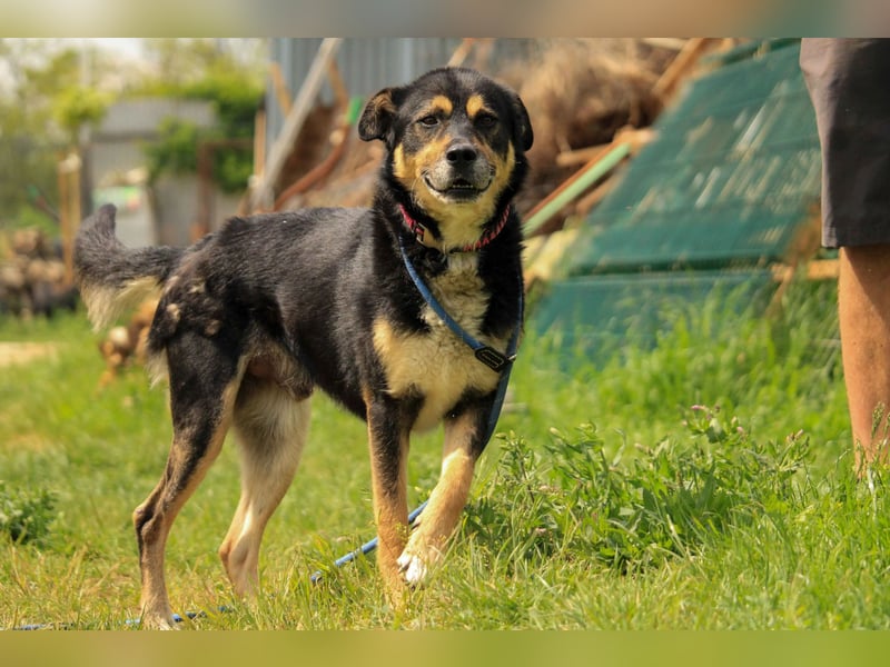Kacska ist ein liebevoller, sanfter und feinfühliger Rüde, der anfangs etwas zurückhaltend agiert und fremdelt - vor allem bei neuen Menschen. Sobald er Vertrauen gefasst hat, bindet er sich eng an seine Bezugsperson und zeigt sich aufmerksam, loyal und sehr verschmust. Aufgrund eines Beinbruchs musste sich Kacska zeitweilig erwas schonen. Der Bruch ist aber zwischenzeitlich operativ versorgt und Kacska springt wieder lebensfroh durchs Shelter. An der Leine läuft Kacska bereits ordentlich, zeigt sich kooperativ und aufmerksam. Das Hunde-1x1 muss er noch lernen.