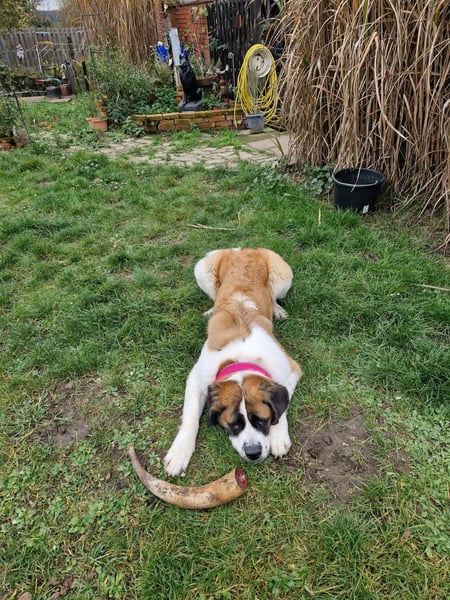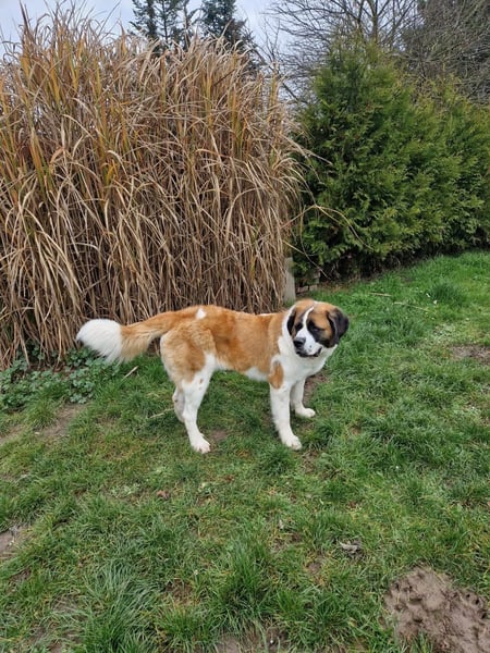 Abgegeben wurde sie laut der Familie wegen Agressionen, allerdings zeigte sie davon im Tierheim nicht die geringste Spur. Sie hat nicht einmal geknurrt oder schlimmeres. Stattdessen war sie sehr freundlich, mochte die Menschen sehr und war auch beim Tierarzt und beim Impfen sehr lieb. Mit anderen Hunden kam sie hier ebenfalls bestens zurecht. Möglichweise steckt in ihr auch ein bisschen Moskauer Wachhund, allerdings zeigt sich bisher nur der Charakter vom Bernhardiner.