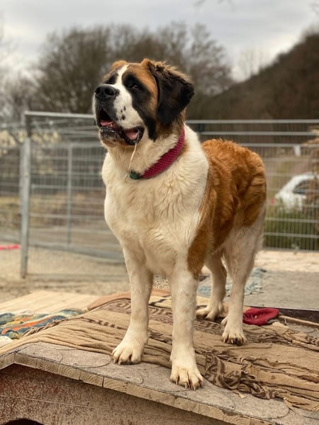 Shahina ist eine etwa zwei Jahre alte Bernhardiner-Hündin, die nach einer schwierigen Vergangenheit in unserem Partnertierheim auf ihr perfektes Zuhause wartet.