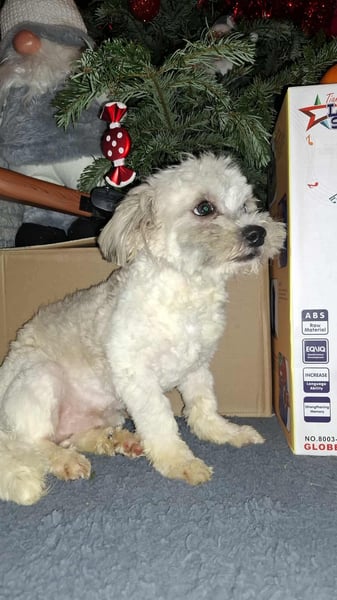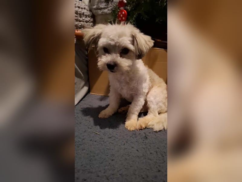 Toy ist ein zuckersüßer kleiner 1 jähriger Bichon-Malteser Mischlingsrüde, der ausgesetzt wurde und dann glücklicherweise bei einer rumänischen Tierärztin Unterschlupf fand.