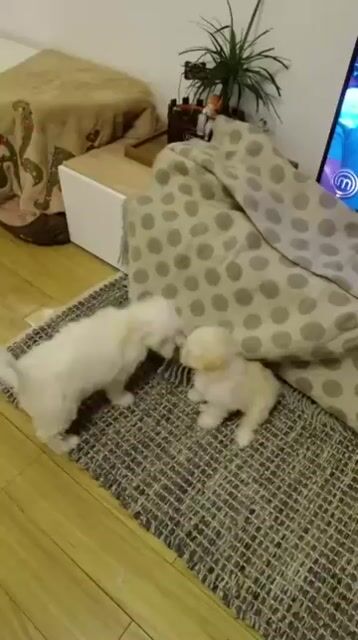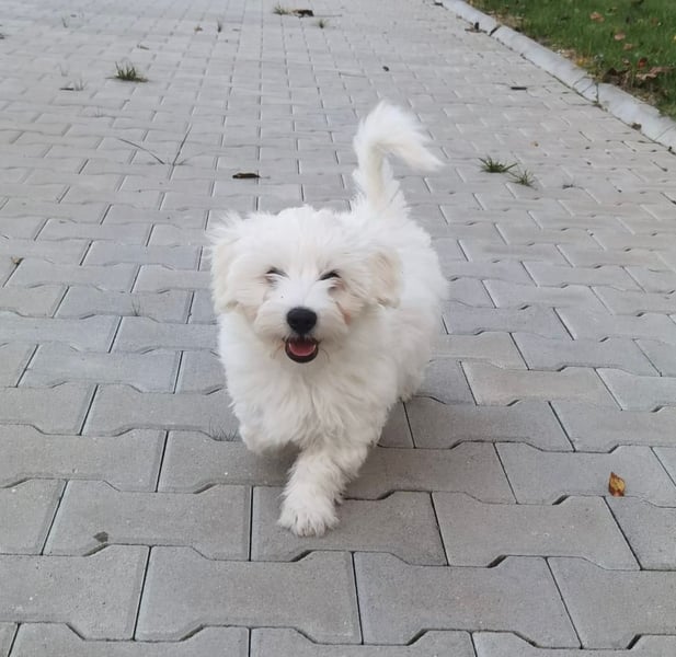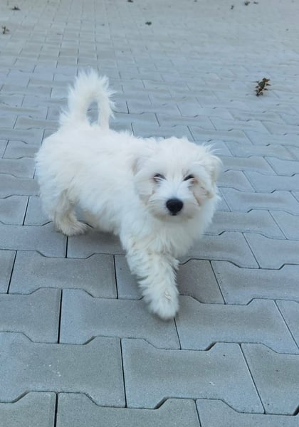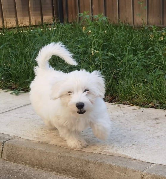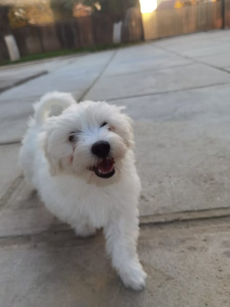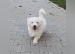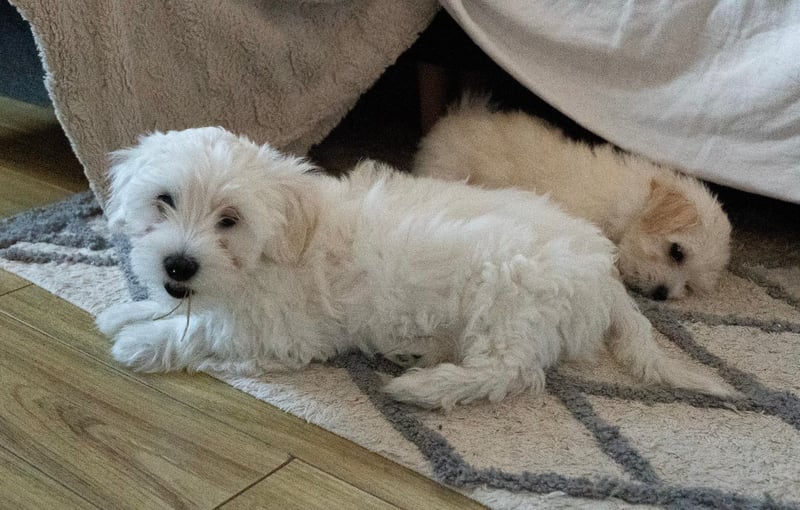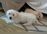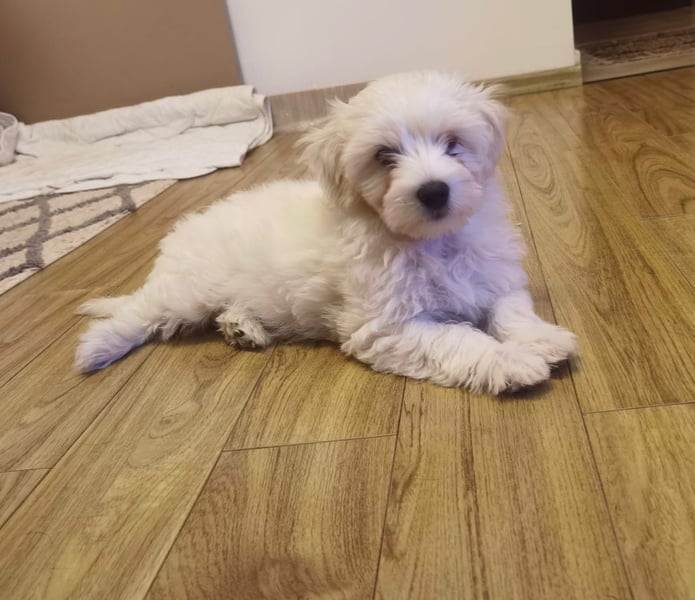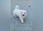 Welpe SKITTLES (Bichon-Malteser Mix) wartet auch sein Körbchen