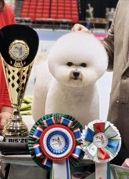 Der Vater Logan stammt aus einem weltweit bekannten chinesischen Bichon-Kennel, der auf Platz 1 der chinesischen Bichon-Rangliste steht. Er zeichnet sich durch eine kräftige Knochenstruktur, muskulöse Gestalt, üppiges Fell und hervorragende Pigmentierung aus, dazu eine fröhliche und lebhafte Persönlichkeit. Auf der Showbahn ist er bereits mehrmals "Best of Breed" ausgezeichnet worden und gewann kürzlich sogar den "Best in Show 1. Platz" auf der Martini Dog Show in Holland – bei über 1500 Teilnehmerhunden an diesem Tag.