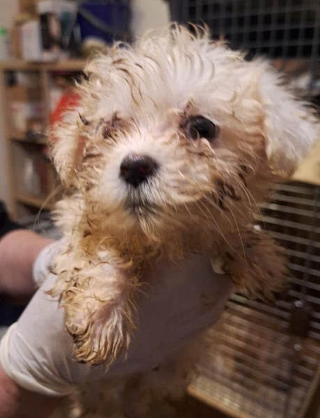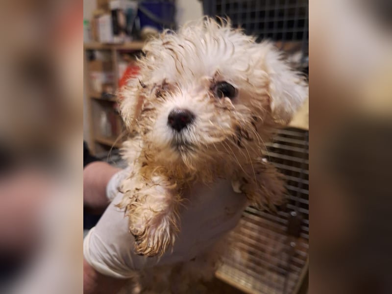 CHELSY, neugierige Welpin, fast 3 Monate, 20 cm, Bolonka Zwetna-Mischling, Tierschutz Rumänien