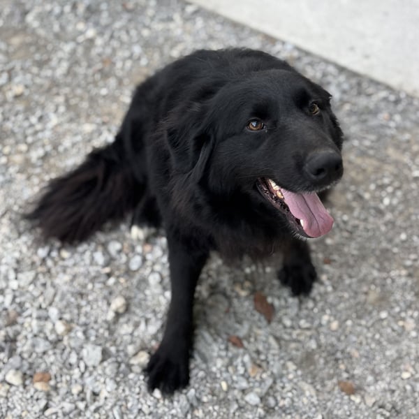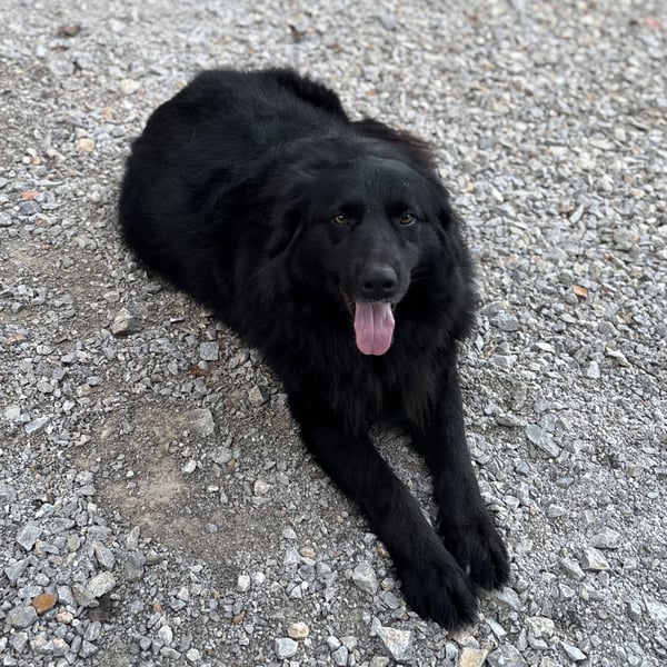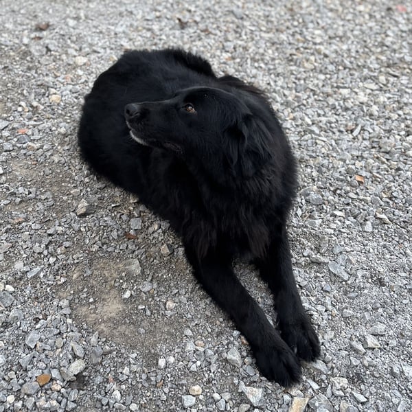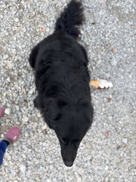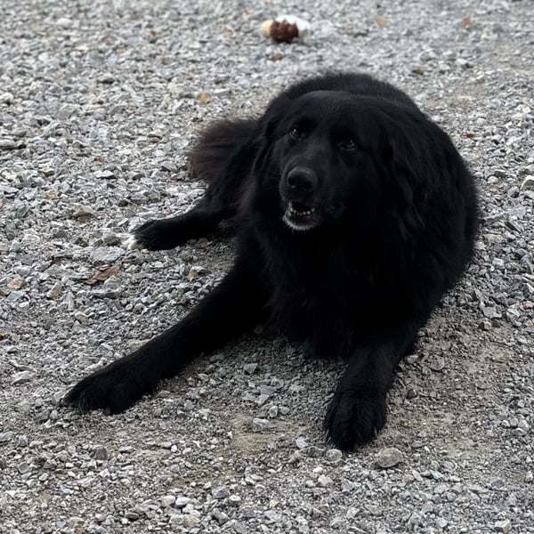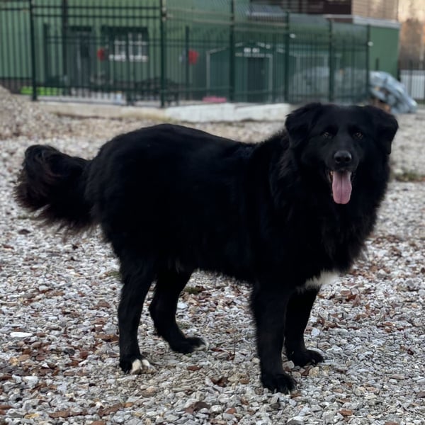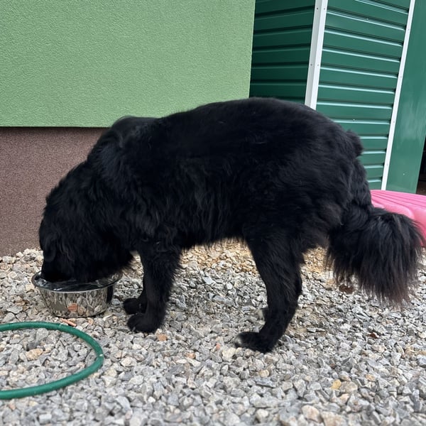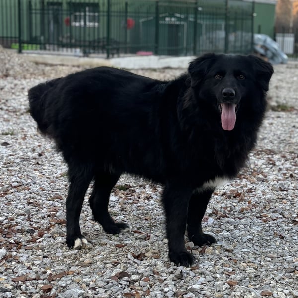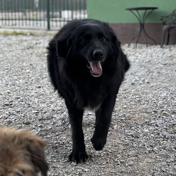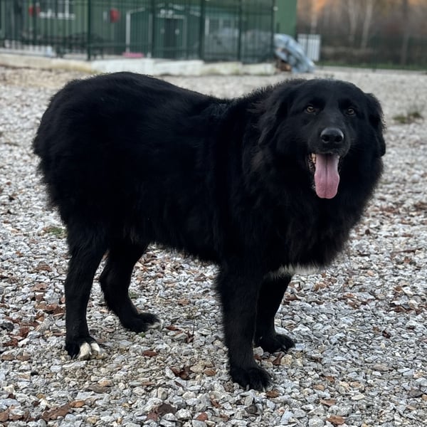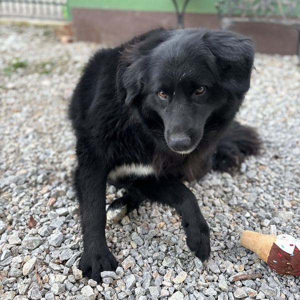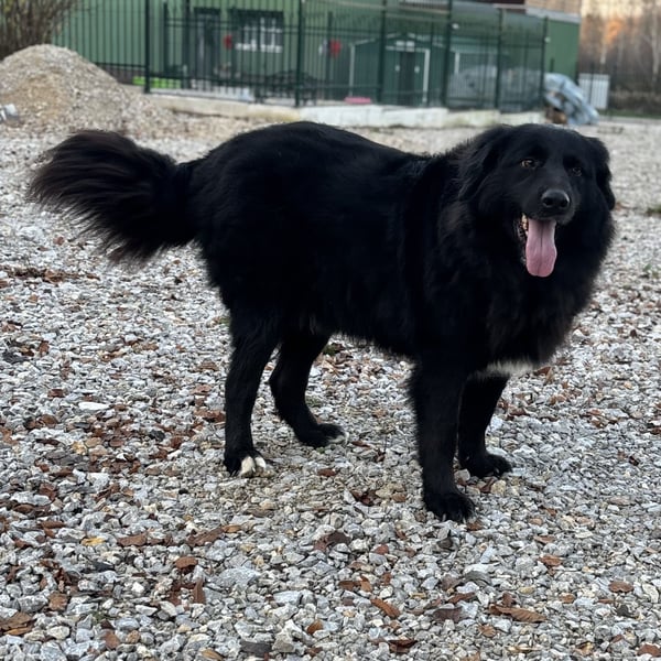 Mika ist ein Mädchen, laut Tierarztschätzung ca. 4 Jahre alt (geb. 10.12.2021). Sie wurde noch nicht gewogen, wiegt aber aktuell sicherlich über 40 kg, ist deutlich übergewichtig und unter 60cm groß, ihr Körper ist aber lang. Obwohl vermutet wird, dass sie ein Border Collie - Mudi - Tornjak Mix ist, sieht sie wegen der Statur/Farbe eher aus wie ein Neufundländer.