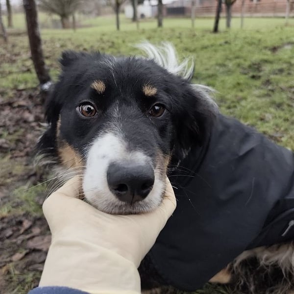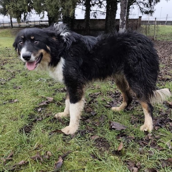 Charles ist ein Rüde, laut Tierarztschätzung ca. 2 Jahre alt (geb. 30.03.2024), wiegt 16 kg und ist etwa 53 cm groß. Vermutet wird ein Border-Collie-Mischling.