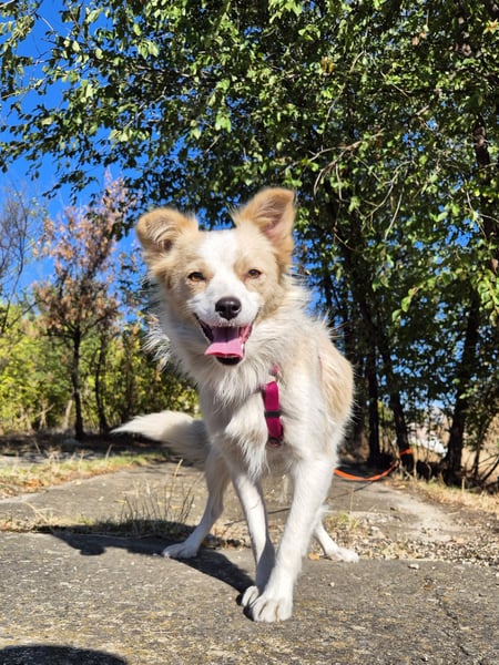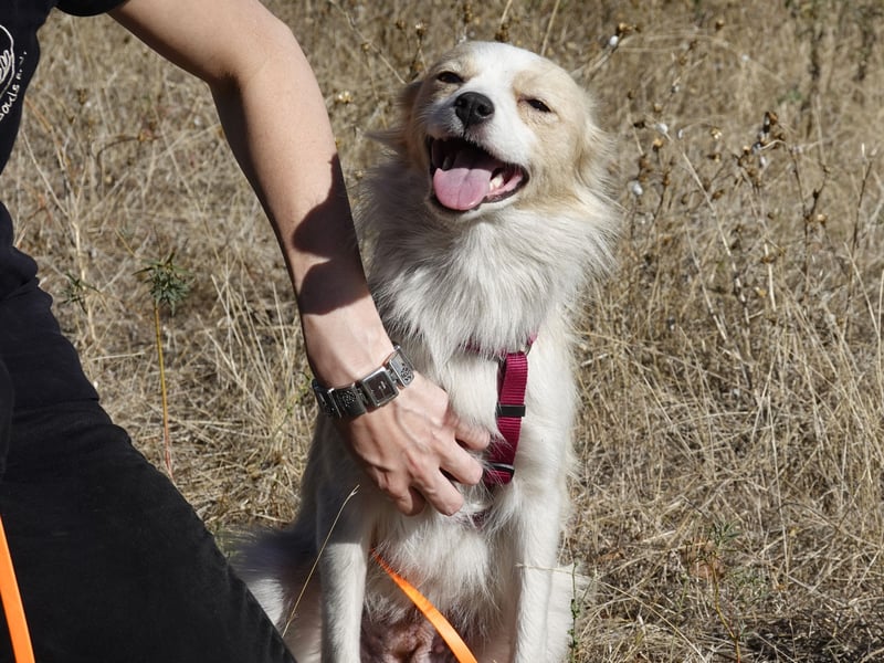 Stina ist eine sanftmütige, sensible Hundedame mit einem wunderschönen, ausdrucksstarken Blick. Wenn vertraute Menschen kommen, beginnt ihre Rute zu wedeln und ihre Augen leuchten – doch bislang fehlt ihr noch der Mut, aktiv auf Menschen zuzugehen. Ihr Verhalten ist derzeit ambivalent: neugierig und freundlich, aber gleichzeitig unsicher. Sie braucht etwas Zeit, um zu verstehen, dass ihr niemand mehr etwas zuleide tun wird. Gibt man ihr diese Zeit, taut sie langsam auf und genießt Streicheleinheiten dann sehr. In ruhigen Momenten lässt sie sich bereits gerne berühren und zeigt dabei, wie sehr sie Nähe eigentlich schätzt.