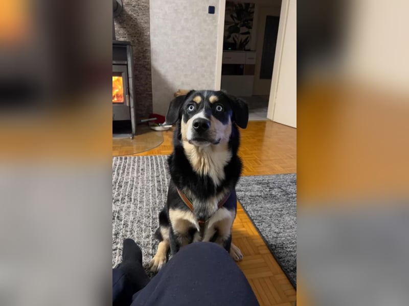 Ich bin ein Bordercollie & American Shepherd Mix, Schulterhöhe ca. 58 cm, Gewicht ca. 25 kg und geb. 2024.