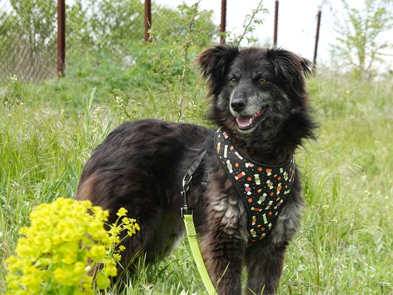 Bei unserem Besuch in Rumänien lernten wir Berta als freundliche, aufgeschlossene und menschenzugewandte Hündin kennen, die sich sehr über die Abwechslung, die unsere Anwesenheit bot, freute und die seltenen Streicheleinheiten genoss. Wir gehen davon aus, dass unter Berta’s Vorfahren Hütehunde waren, denn die aufgeweckte Hundedame ist sehr intelligent und bemüht, uns Menschen zu gefallen. Das Laufen an der Leine hat sie in Windeseile gelernt und schnell Gefallen an Ausflügen ins Grüne gefunden. Daher sollte Berta’s Familie Lust und Zeit haben, sich mit der pfiffigen Hündin zu beschäftigen und sie sowohl körperlich als auch geistig sinnvoll auslasten, damit sie eine tolle Wegbegleiterin werden kann.