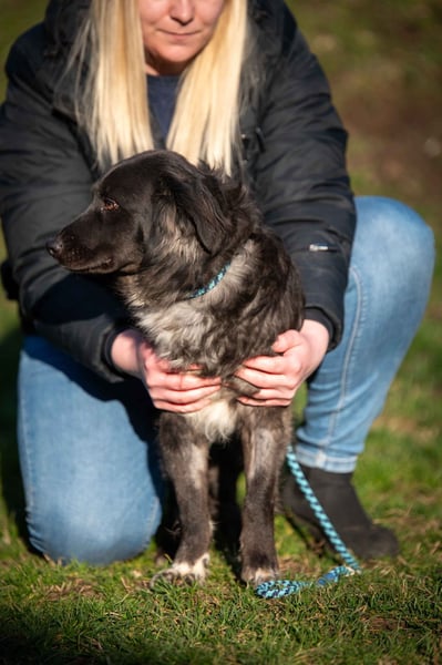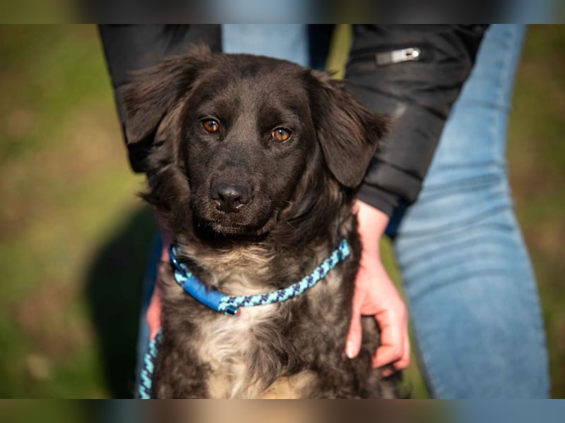 Er freut sich über Streicheleinheiten und über Ansprache. Er ist ein menschenbezogener, zugänglicher und aufgeschlossener Hund der Menschliche Nähe genießt.