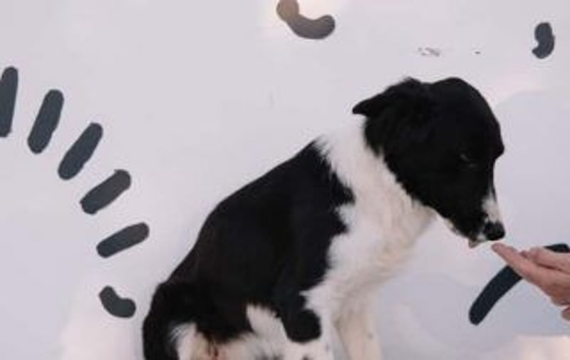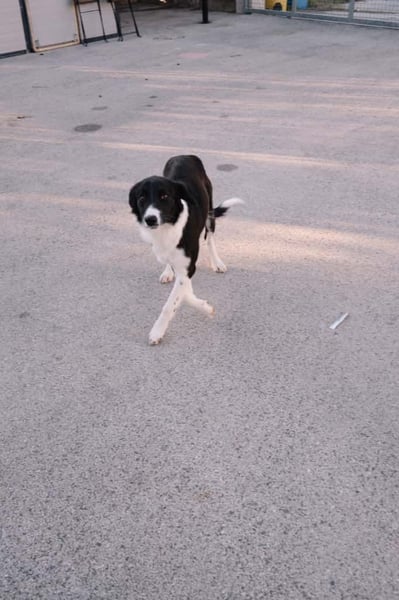 Schon auf dem Foto erkennt man: Nora ist eine zarte, elegante junge Hündin, schwarz-weiß gezeichnet wie ein klassischer Border Collie, mit einem sanften, wachsamen Blick. Ihre Körperhaltung zeigt etwas Vorsicht – was völlig normal für ein junges Hundemädchen ist, das gerade frisch im Shelter angekommen ist.