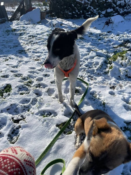 Mit anderen Hunden hatte sie bereits erste Kontakte, die ruhig und positiv verliefen. Noch ist sie etwas schüchtern, aber wir üben gemeinsam ? und sie macht täglich kleine, wunderbare Fortschritte.