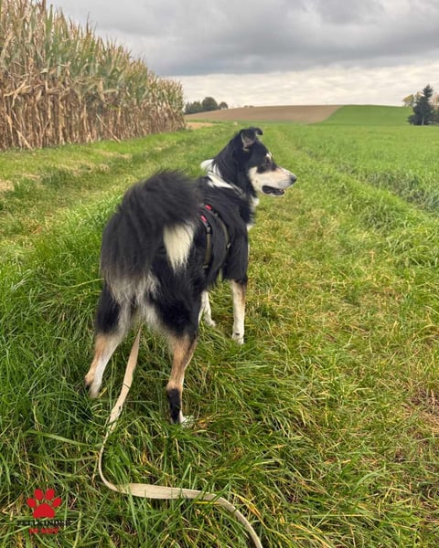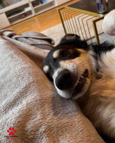 Cuby ist ein gemütlicher, aber cleverer Hütehund-Mix, der sowohl Kuschelzeit als auch geistige Auslastung und klare Führung braucht. Ein Garten wäre toll, aber kein Muss!