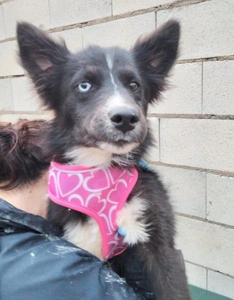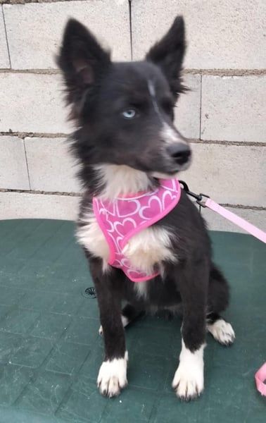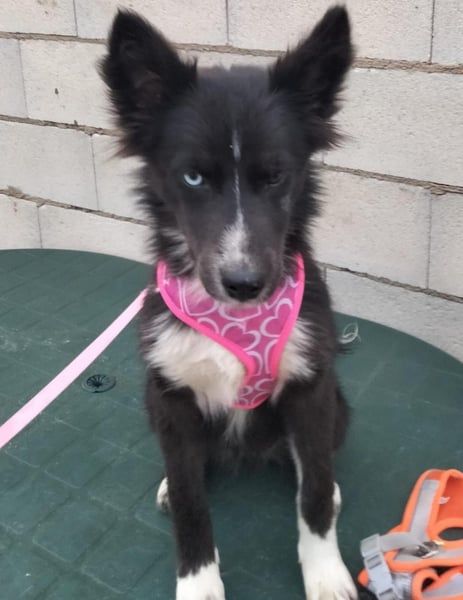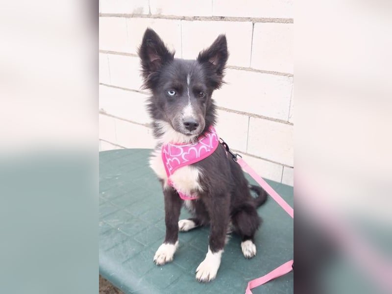 Lluvia ist eine junge Border-Collie-Mix-Hündin, die mit ihrem schwarz-weißen Fell und ihren zwei verschiedenfarbigen Augen sofort verzaubert. Ein strahlend blaues und ein warmes braunes Auge verleihen ihr einen besonderen Ausdruck. Sie ist eine wahre Schönheit – außen wie innen.