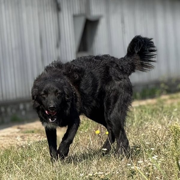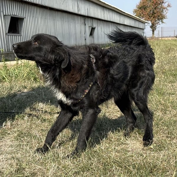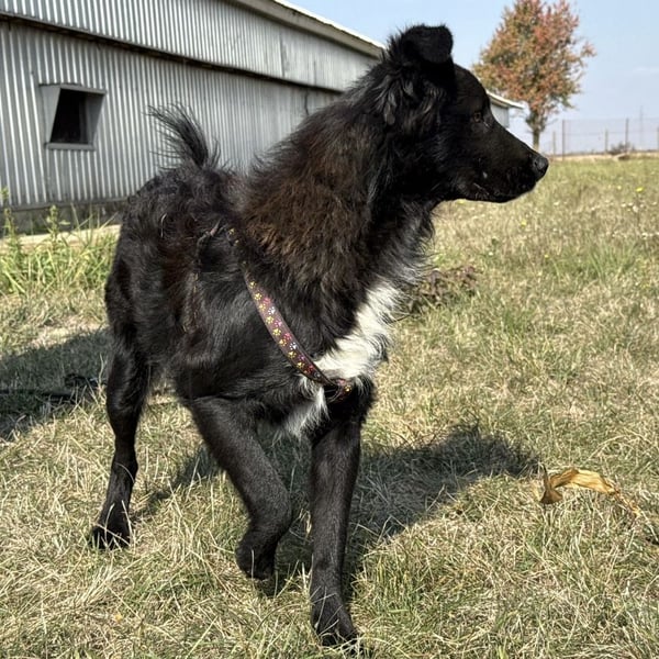 Bobi ist ein Rüde, laut Tierarztschätzung ca. 10 Monate alt (geb. 07.12.2024), wiegt 16,2 kg und ist 48 cm groß. Vermutet wird ein Border-Collie–Mudi-Mix.