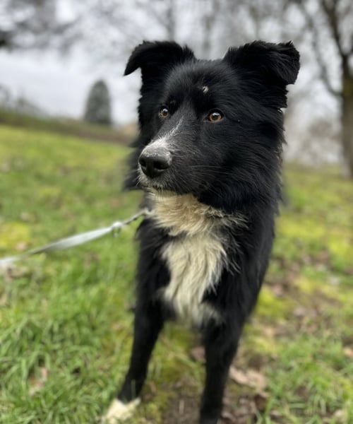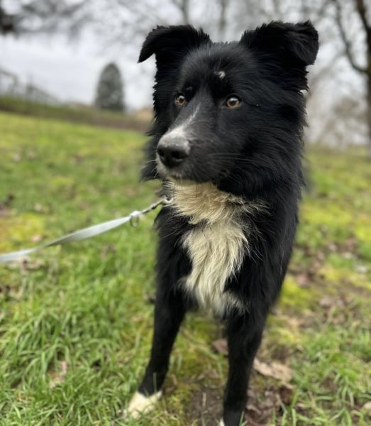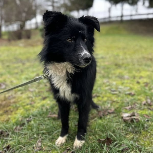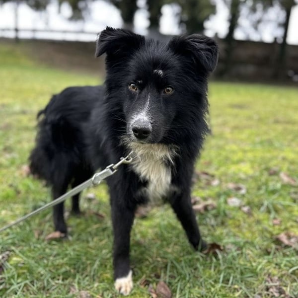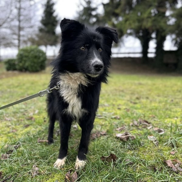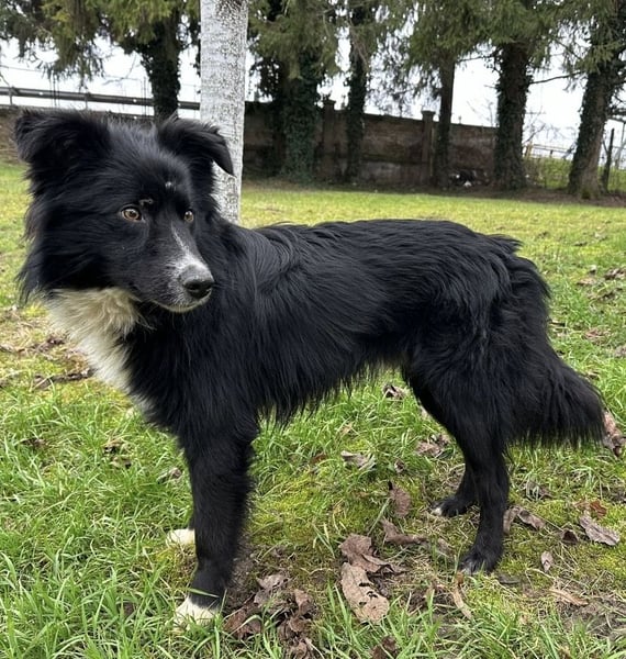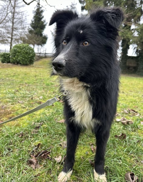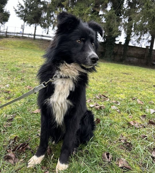Louis ist ein Rüde, laut Tierarztschätzung ca. 2 Jahre alt (geb. 03.12.2023), wiegt 18,5 kg und hat eine Schulterhöhe von 54 cm. Vermutet wird ein Border-Collie-Mischling.