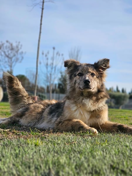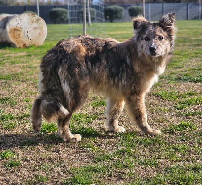 Als Hütehund - Border Collie x Berger des Pyrénées bringt sie Intelligenz, Lernfreude und eine gute Portion Energie mit. Sie liebt es, aktiv zu sein, Neues zu entdecken und gemeinsam mit Euch die Welt zu erleben.