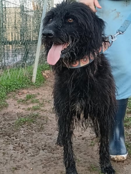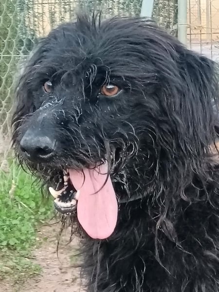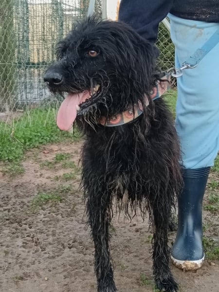 Bingo ist ein vierjähriger (Stand 04/2025) Hütehund-Mix (Border Collie und Wasserhund), der dringend ein liebevolles Zuhause sucht. Sein bisheriges Leben war alles andere als glücklich, denn er wurde von einer Familie gehalten, die sich überhaupt nicht um ihn kümmerte. Er musste auf dem Dach eines Wohnhauses leben, ohne jeglichen menschlichen Kontakt. Trotz dieser Vernachlässigung hat Bingo seinen Lebenswillen und seine Neugierde nicht verloren. Seit Bingo in der Obhut unserer Freunde in der Arca Sevilla lebt, hat sich schon vieles für ihn zum Besseren gewendet.