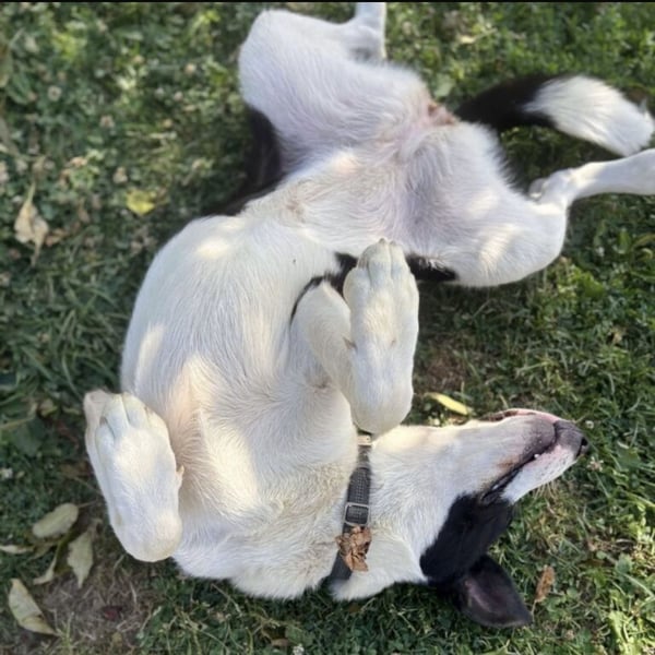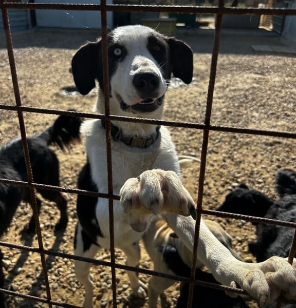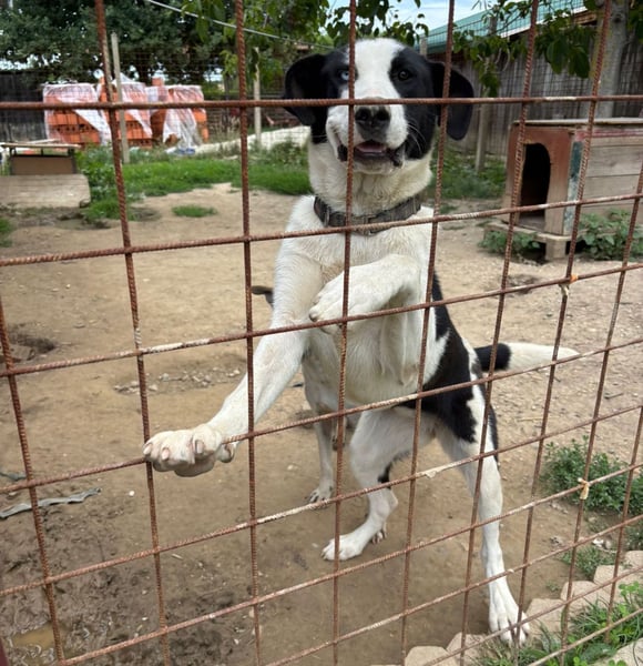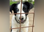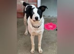 Tina ist ein Mädchen, sie ist laut Tierarztschätzung ca. 1 Jahr alt (geb. 07/2024), wiegt 28 kg und ist 62 cm groß. Vermutet wird ein Border Collie - Labrador Mischling.