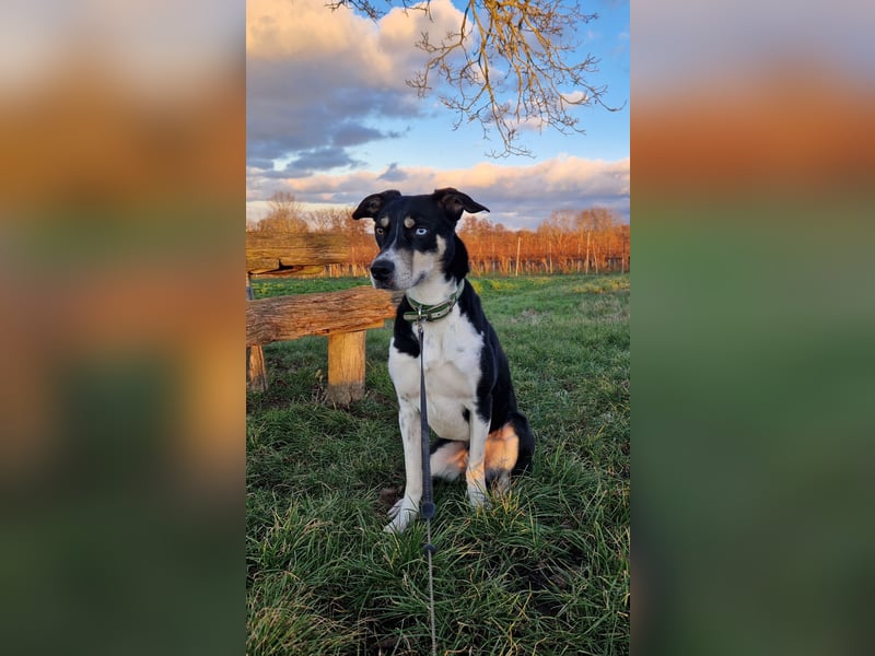 Border Collie–Husky-Mix Rüde (2021) freundlich & aktiv, verschiedene Augenfarben