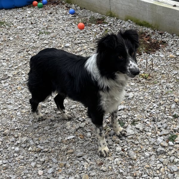 Linchen ist laut Tierarztschätzung ca. 2 Jahre alt (geb. 25.12.2023), wiegt 16kg und ist 45-47cm groß. Sie scheint ein reinrassiger Border Collie zu sein. Optisch, charakterlich, sowie Größe - alles passt.