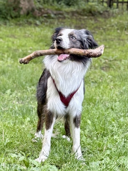 Er beherrscht alle Grundkommandos. Sein einziges Manko ist , dass er draußen vermehrt bellt. Vorallem bei fremden Hunden. (er ist aber sehr verträglich)