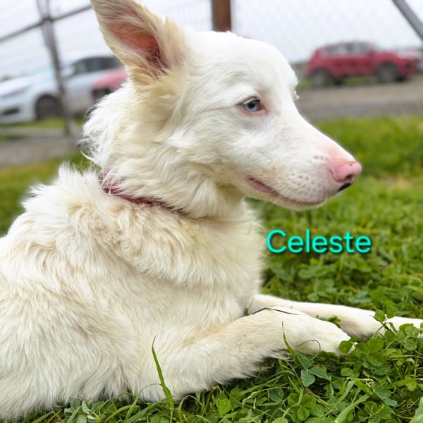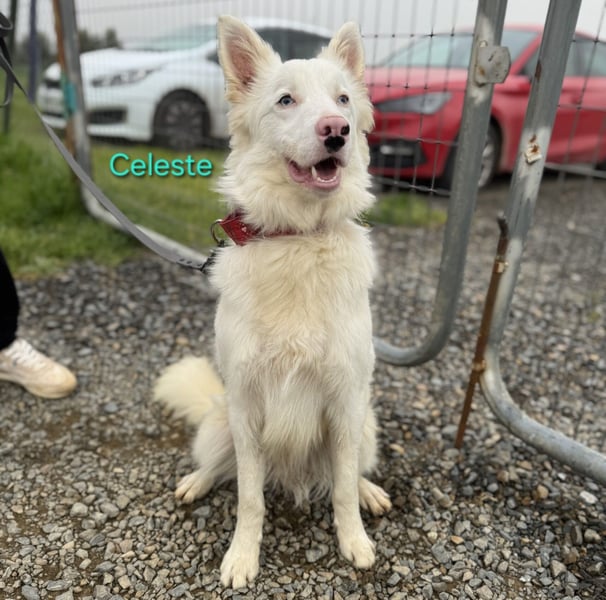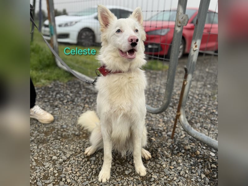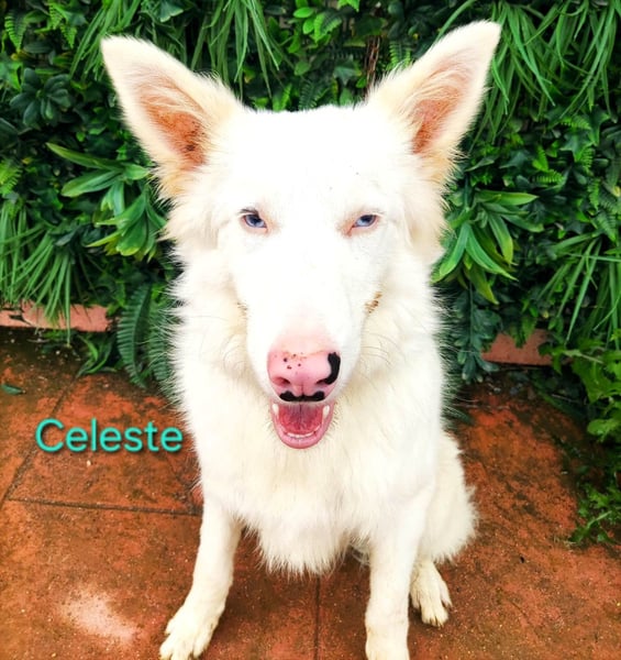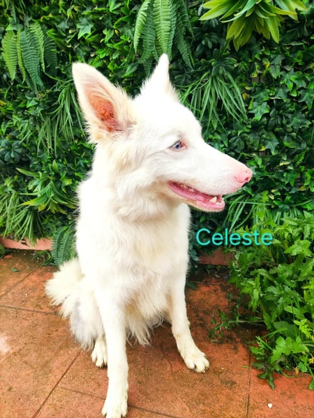 Celeste leidet am sogenannten Doppelmerle-Syndrom. Dadurch ist er taub und sein Sehvermögen ist eingeschränkt und wird sich laut Prognose vermutlich weiter verschlechtern. Trotzdem ist er ein extrem sensibler, intelligenter Hund, der sehr stark die Nähe zu Menschen sucht.